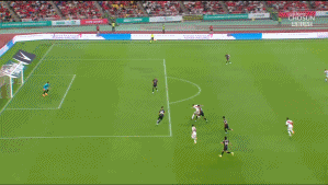 第33分钟,李刚仁右路弧顶内切打门被加莱塞单掌扑出。↓