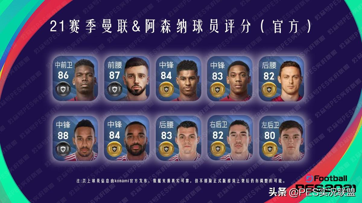 距离Efootbal PES2021端游正式上线还有10天,Konami预热宣传中的干货也是越来越多。就在昨天,PES2021的官方推特账号发布了两则简短视频,分别展示了21赛季曼联、阿森纳部分球员的评分,这是官方正式公开的第一波新赛季实锤数据。
