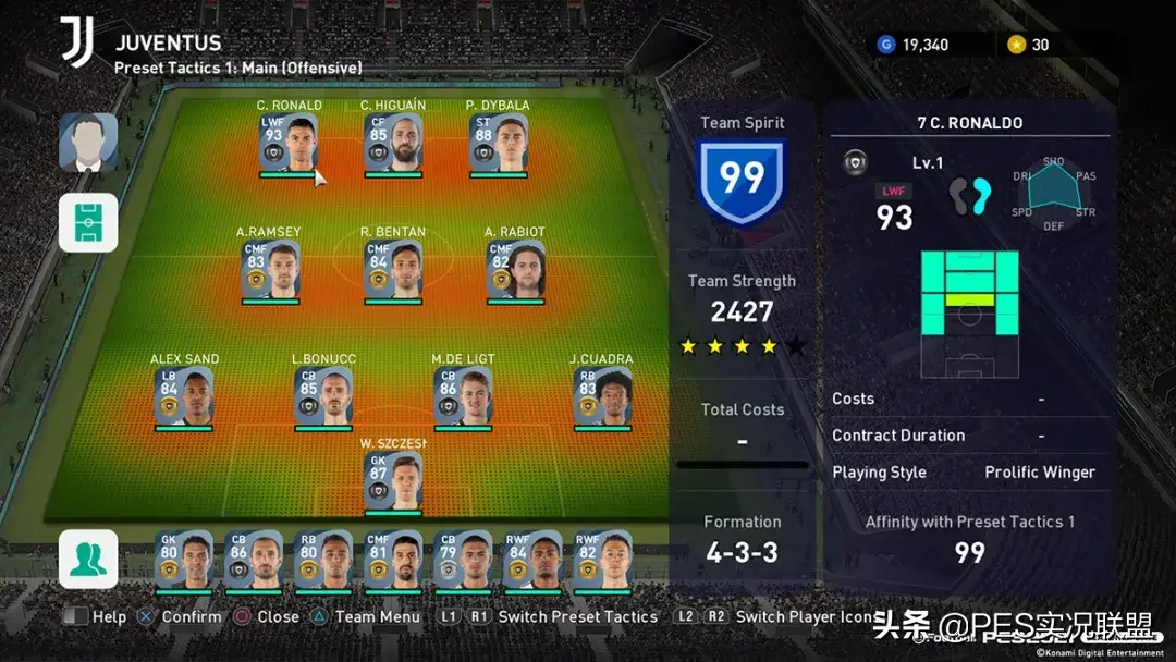 3.这是官方正式公开的第一波21赛季球员评分,但其实早在7月份PES2021端游官网上线时,其预售界面便挂出了五大合作俱乐部的阵容图。