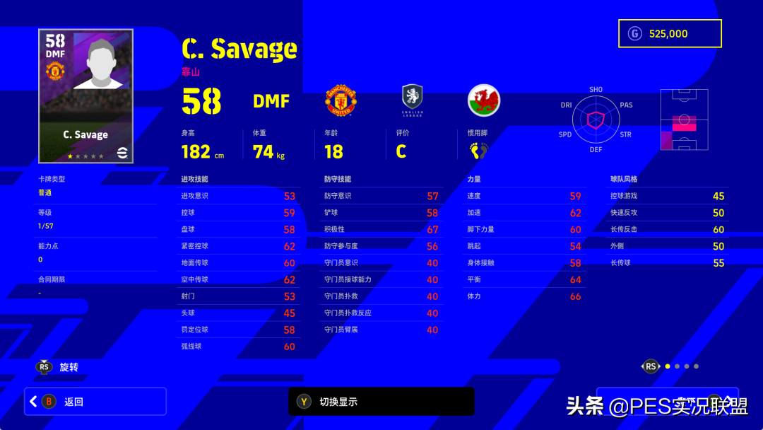 属性变化:进攻意识-8、控球-9、盘球-14、紧密控球-9、地面传球-13、空中传球-14、射门-7、头球-13、定位球-10、弧线球-11、速度-11、加速-12、脚下力量-7、跳跃-11、身体接触-18、平衡-19、体力-20、防守意识-8、铲球-16、积极性-12