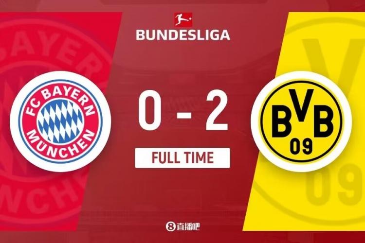 直播吧3月31日讯 01:30德甲第27轮上演国家德比,拜仁主场对阵多特。上半场,布兰特反击助攻阿德耶米破门,胡梅尔斯极限解围戴尔头球;下半场双方门将多次扑救,莱尔森破门,凯恩扳回一球但越位无效。最终,拜仁主场0-2不敌多特,两队近12次交手拜仁首次输球。与此同时,拜仁各项赛事3连胜终结,与榜首勒沃库森的差距拉大到13分!多特德甲取得4连胜,各项赛事5连胜!积分榜上超越莱比锡,升至第4!