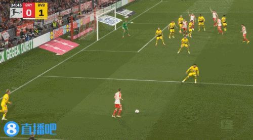 第23分钟,基米希传中,凯恩的头球又顶偏了↓