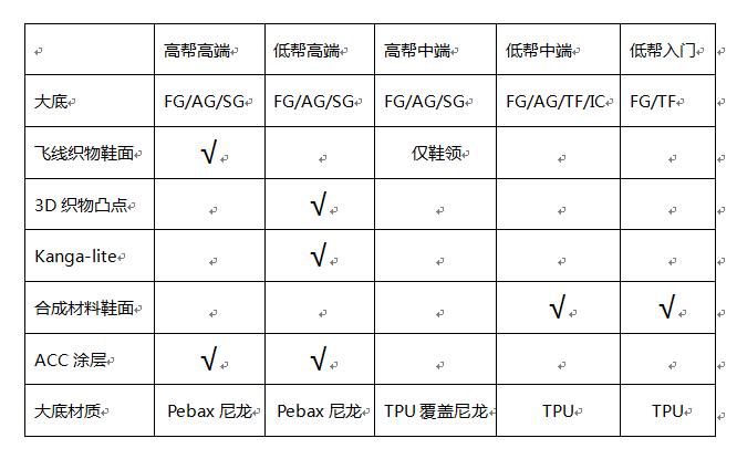 FG版本的鬼牌2代大底设计理念是“更快的反应速度”,所以大底鞋钉大部分都是采用了扇形设计,前掌中心还采用了圆形的“转向区域”设计。不过在AG大底方面,这些设计并没有得到保留,而是传奇、毒蜂、鬼牌的通用大底。大底方面还有一个好消息,那就是在顶级款式中大底采用的是舒适的Pebax和尼龙材质,脚感一流。