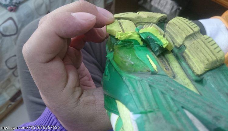 拆到前掌内侧,终于看见了gel.厚度大约2到3毫米吧,现在我就告诉你们为什么gel的宣传存在严重误导!