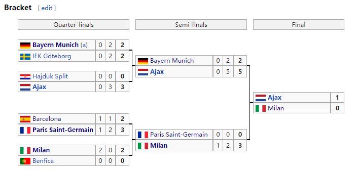 到了决赛层面,故事的主角仍旧是攻防两派的代表,AC米兰展现了王朝时代最后的挣扎,阿贾克斯则用华丽酣畅的场面为攻势足球正名。结果是荷甲豪门笑到最后,自1973年之后,他们再次君临欧洲。
