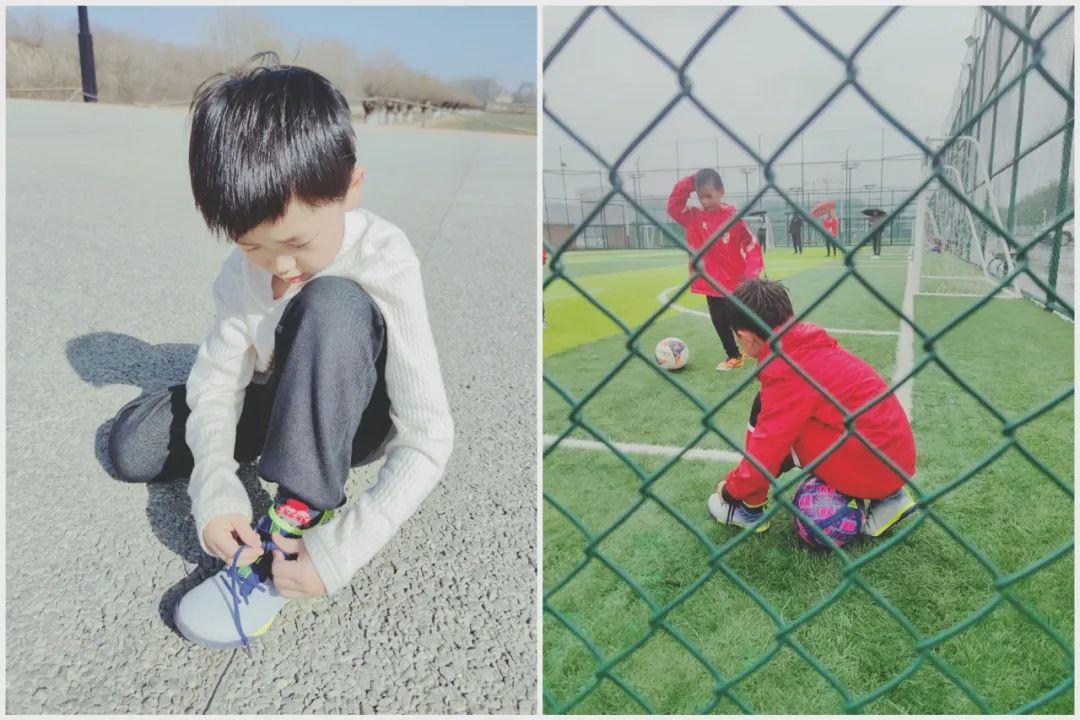 低年级的小朋友都不太会系鞋带,所以荣哥刚开始踢球的时候,一直都是穿魔术贴的鞋子,到了近期才开始适应系鞋带。