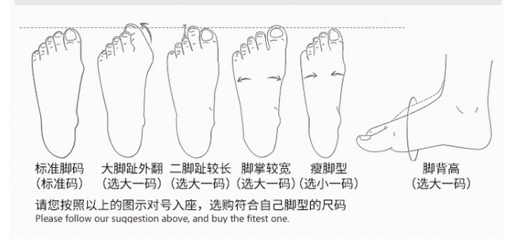 除了以上这些,选码数也很重要,针对不同的脚型,选择鞋子尺码的时候也不一样。