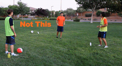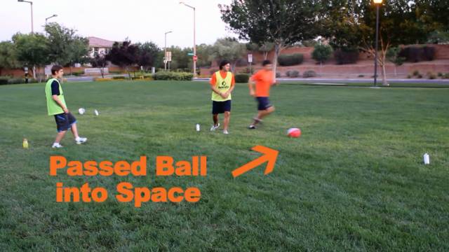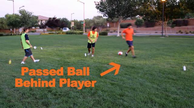 如果只跑到防守队员前面的话,很有可能被断下皮球,二过一的配合也就失去意义。