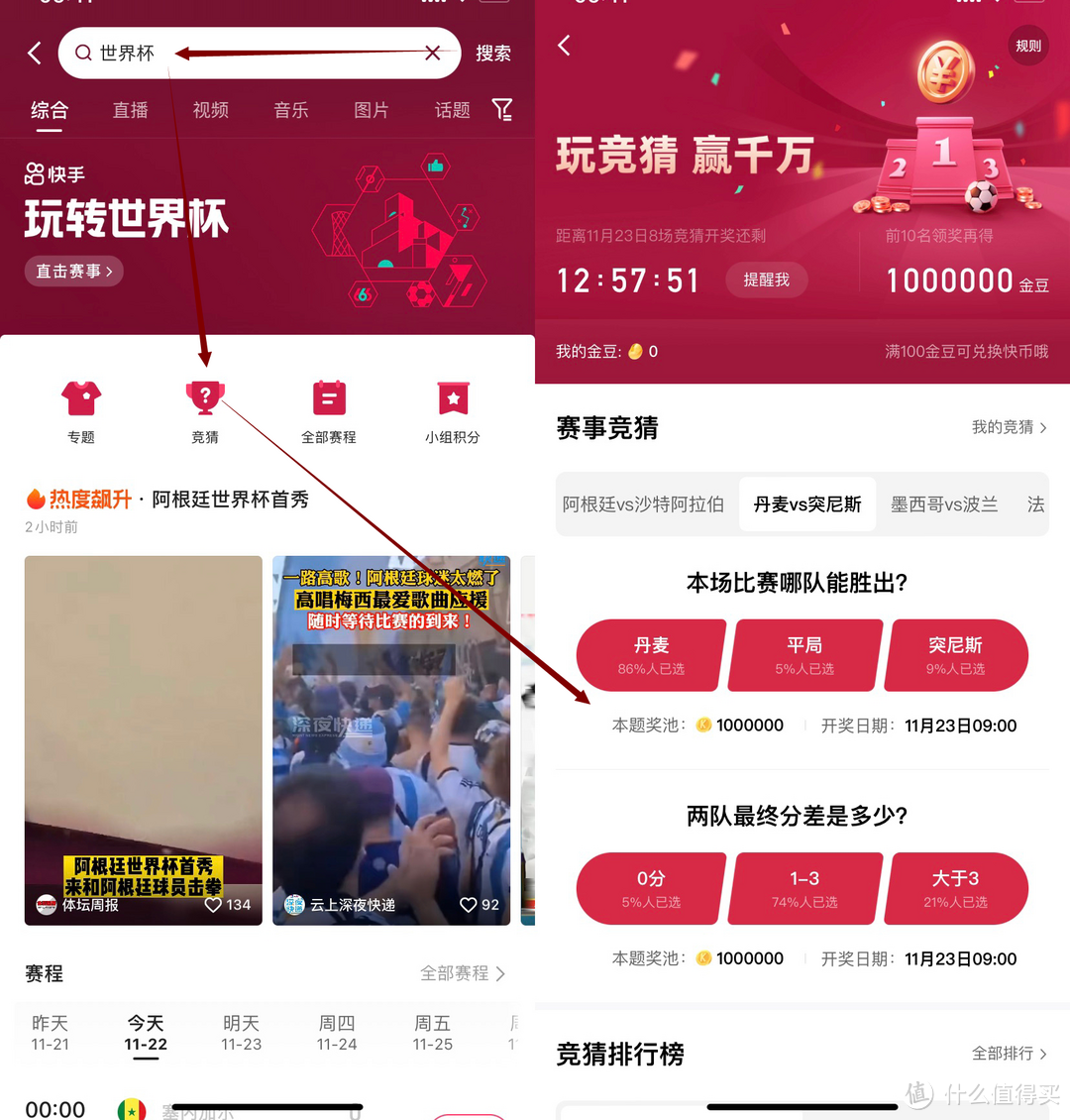 路径:打开快手app——搜索世界杯——点击竞猜,进入活动界面。