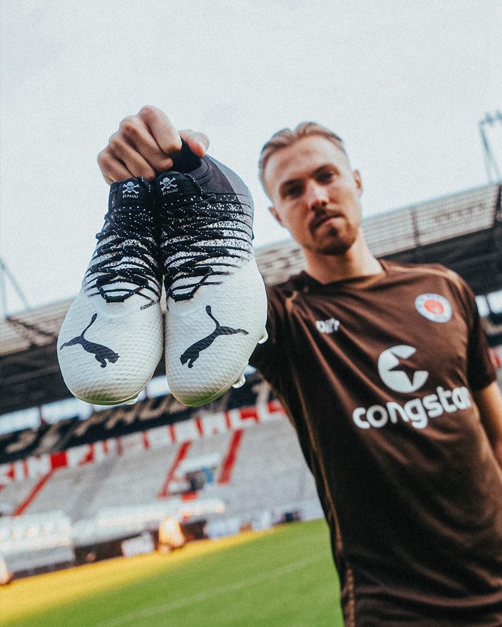 PUMA今年推出了为数众多的联名足球鞋。在2022年的最后一个月,德国品牌选择与本国知名足球装备零售商11teamsports以及圣宝利足球俱乐部合作推出球队专属限量版FCSP × PUMA FUTURE Z 1.4足球鞋。