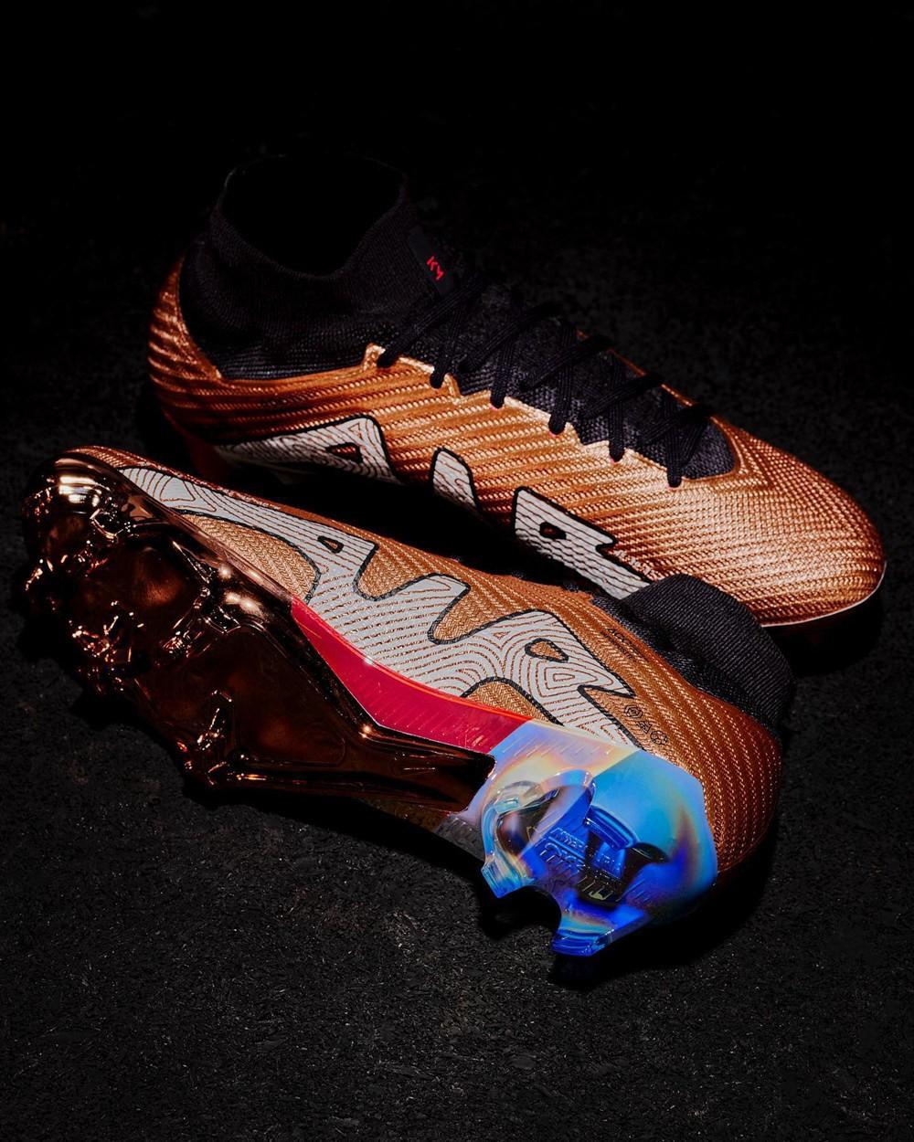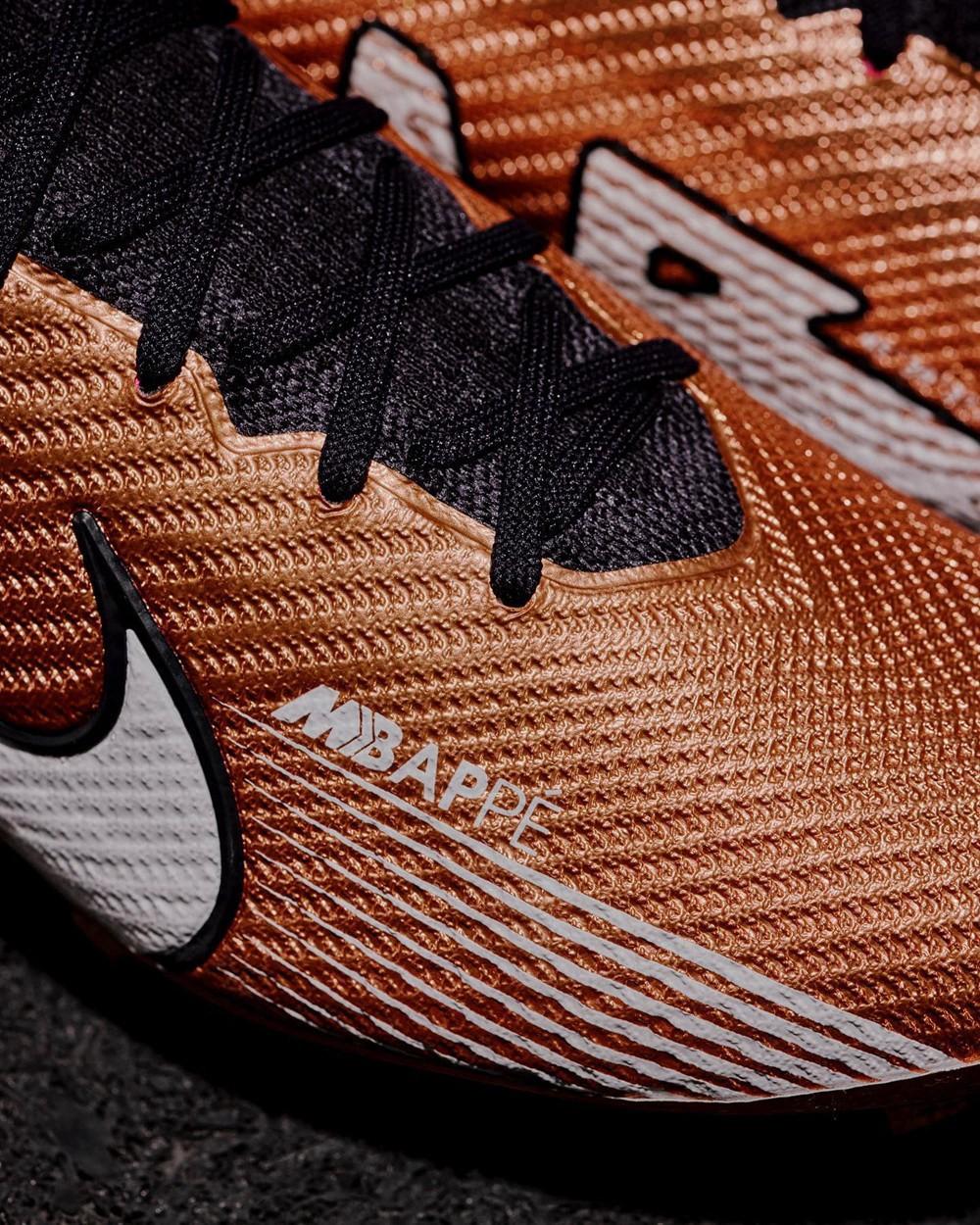 当2022年卡塔尔世界杯进入到淘汰赛阶段后,耐克为法国球星姆巴佩推出了采用特别设计的全新个人专属Air Zoom Mercurial Superfly 9 KM足球鞋。