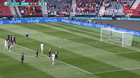 比赛第33分钟,首轮梅开二度的捷克前锋希克在争顶头球时被对手中卫洛夫伦肘击,顿时鲜血直流。裁判在经过VAR提醒之后,通过回看判定洛夫伦禁区内犯规,给到了捷克点球机会,并向洛夫伦出示黄牌。经过了队医紧急止血之后,希克一蹴而就,将自己创造出的机会把握住。凭借这个进球,希克已经将自己本届赛事的进球数提升至3个,对欧洲杯金靴发起强力冲击。