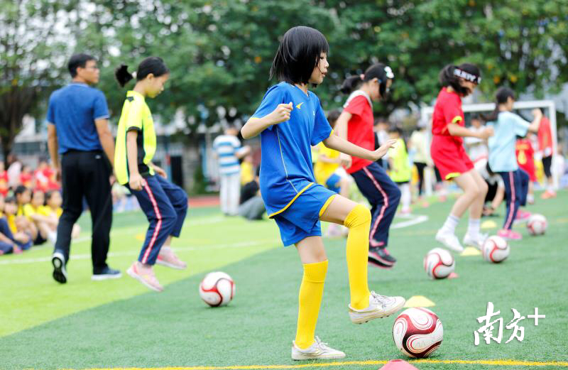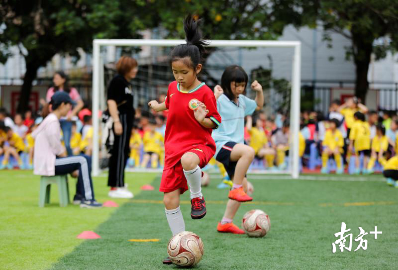2017年学校就投入了100多万元改造足球场和运动跑道,同年9月开始着力推动“足球进课堂”,从1-6年级每个班每周都有一堂足球课,1年级和4年级还会外聘专业足球教练指导教学。