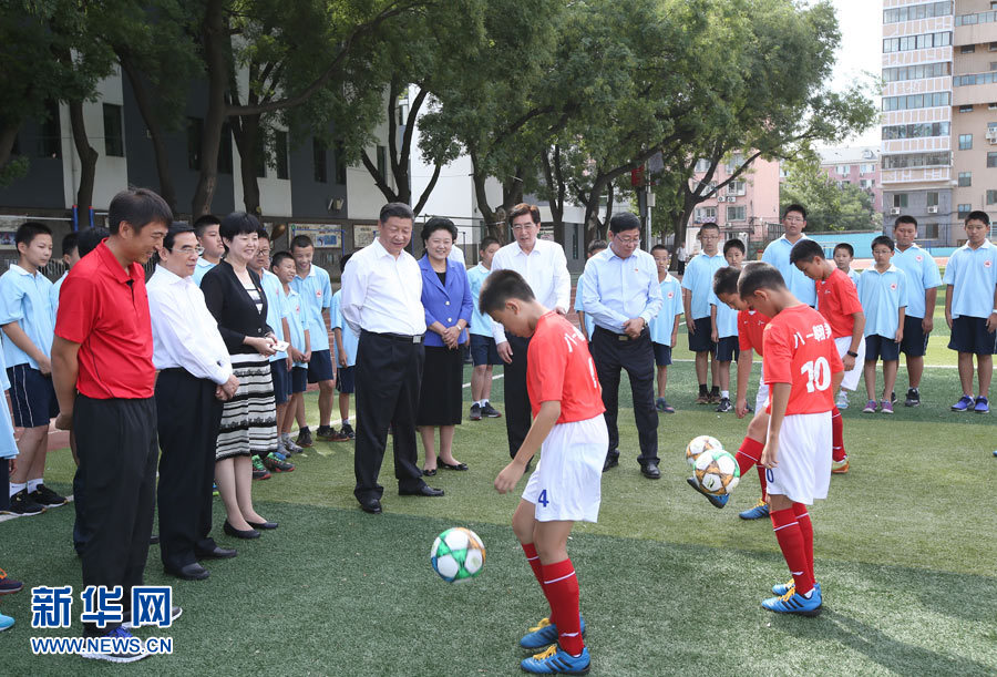 2016年9月,习近平重回母校,看到小足球队员正在进行带球过人训练,笑着对大家说,50多年前我就在这个地方踢过球。那时候还是土场子。他自豪地回忆说,“我们的球队在北京市比赛中拿过冠军,在全国比赛得了第四名”。