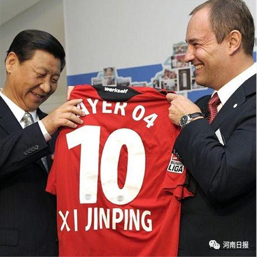 2009年10月,习近平访问德国时获赠勒沃库森队10号球衣。习近平表示,“举办完奥运会后,中国下了一个决心,既然我们其他的运动可以拿到金牌,那么足球啊,一定要下决心搞上去,但是这个时间会很长。”