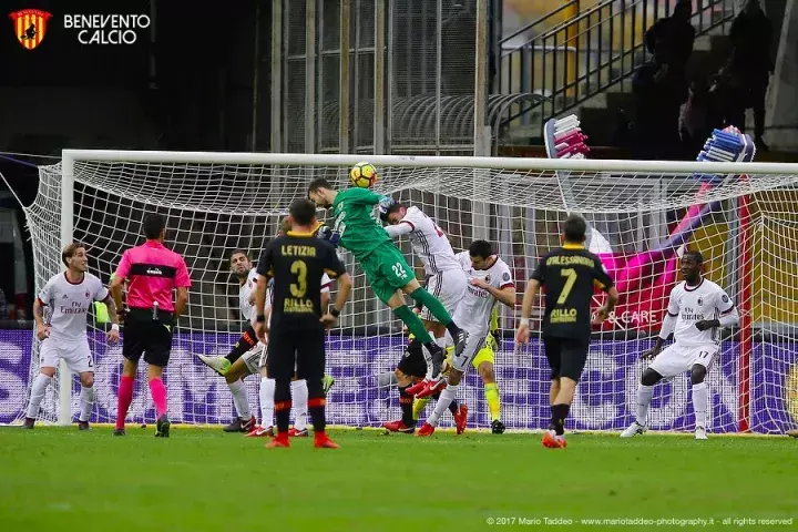 今年26岁的意大利门将布里尼奥利此前在低级别联赛征战了多个赛季,今年夏天他从尤文租借至贝内文托效力,算上主场迎战AC米兰的这场联赛,他职业生涯至今只在意甲出场了9次,个人在意甲的第9次出场,布里尼奥利就神奇地收获了进球。