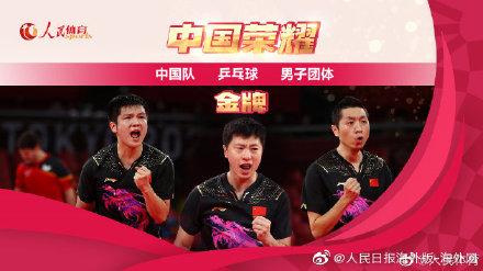 刚刚结束的乒乓球男团决赛,由马龙、樊振东、许昕组成的中国队以3-0的总比分战胜德国队摘得金牌。恭喜中国乒乓球队!(人民体育)