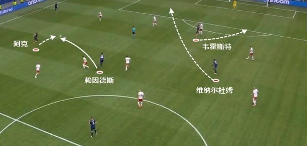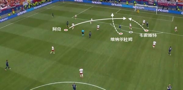 维纳尔杜姆的这一下前插,让波兰防守人都以为他会是接应阿克传球的那个人。