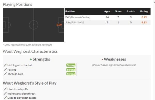 没能被曼联买断,显然不是韦霍斯特的损失。任何一支拥有韦霍斯特作为后手的球队,都有可能更加接近胜利。荷兰的草根中锋,用进球给自己正名。
