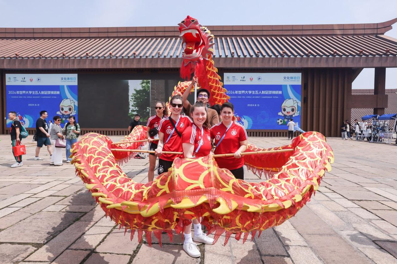 6月13日,2024年世界大学生五人制足球锦标赛“文化体验日”活动在广富林遗址公园举行,来自16个国家和地区21支球队的400余名教练员、运动员、裁判员和国际大体联、中国学体联官员齐聚广富林遗址公园,通过参观广富林考古馆、广富林水下博物馆,参与体验非遗项目、传统文化类学生社团活动,感受中华优秀传统文化魅力。在“文化体验日”活动中,各国运动员代表、青年大学生们增进友谊,促进文化交流。