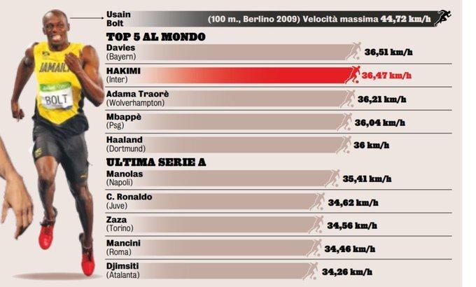 直播吧9月10日讯 《米兰体育报》根据上赛季数据列出了世界最快球员TOP5和意甲速度最快的球员TOP5,其中拜仁球员阿方索-戴维斯以36.51Km/h的速度排名世界第一,上赛季效力多特的阿什拉夫排名第2,姆巴佩以36.04Km/h的速度排名第4,哈兰德第5。