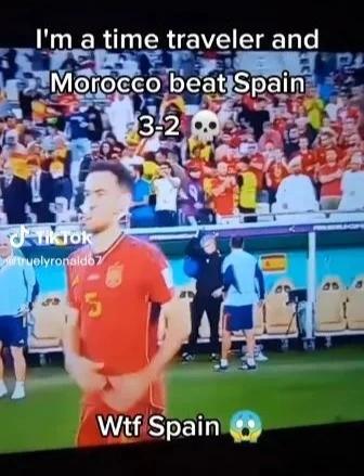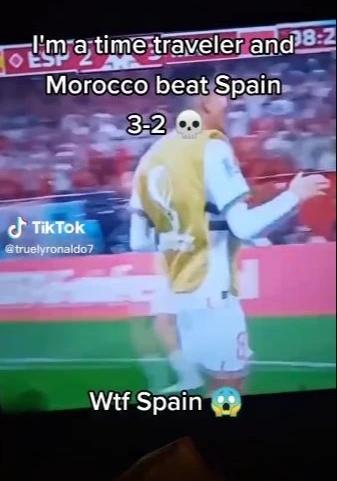 直播吧12月6日讯 据《太阳报》报道,一名自称时间旅行者的人表示,他穿越时空看到了摩洛哥98分钟绝杀西班牙,3-2淘汰对手,并且晒出了一些影像。