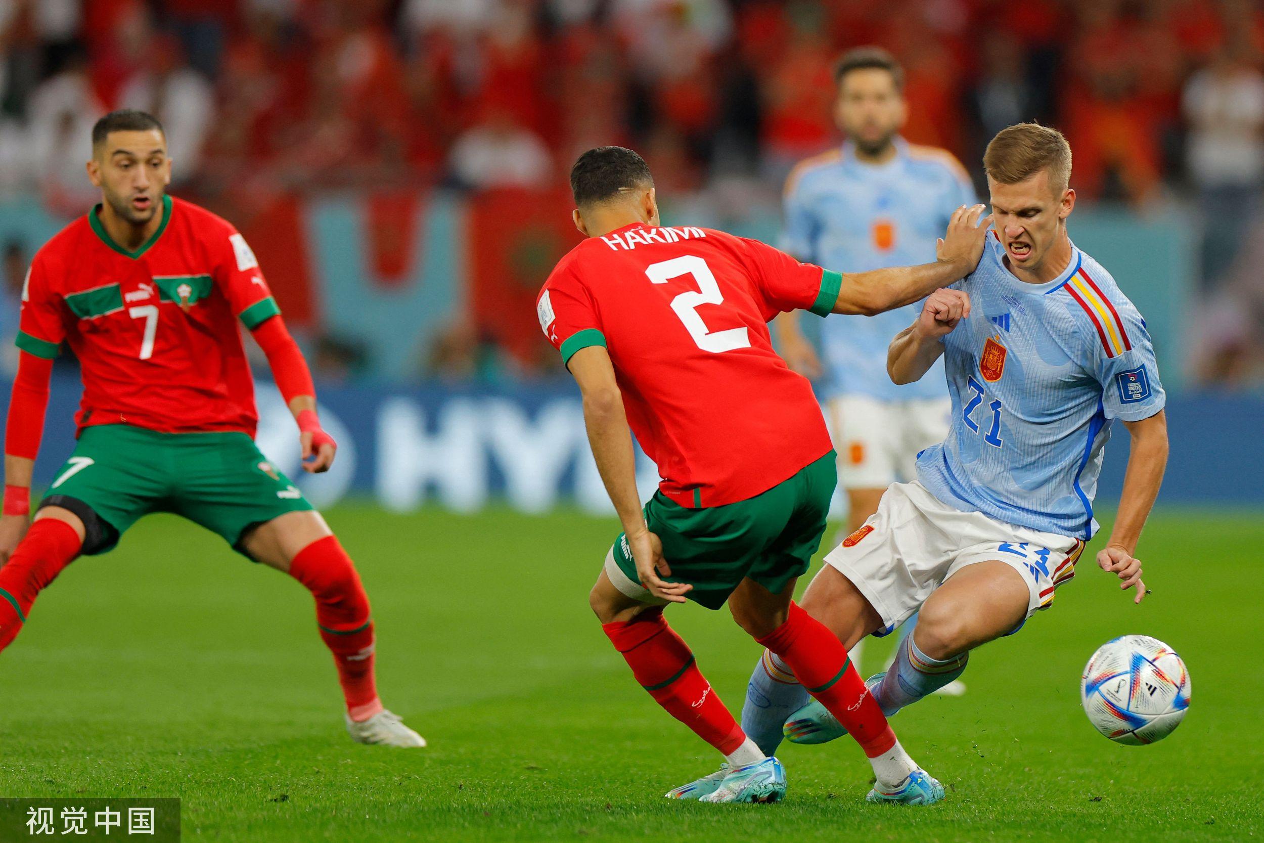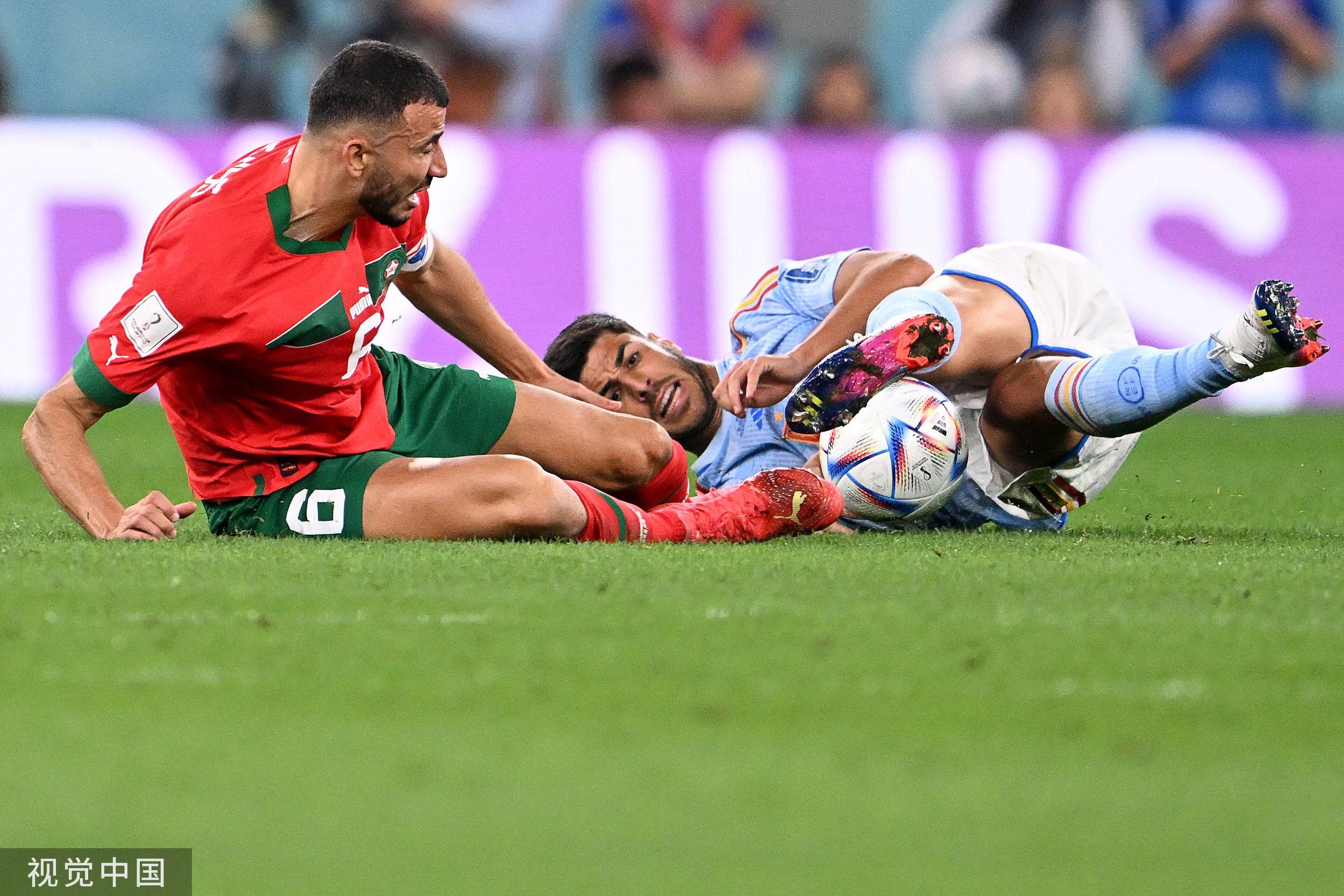 也正因如此,双方在开场就有较多身体接触。而在擅长传控的西班牙队面前,摩洛哥也创造了不少有效的进攻机会。