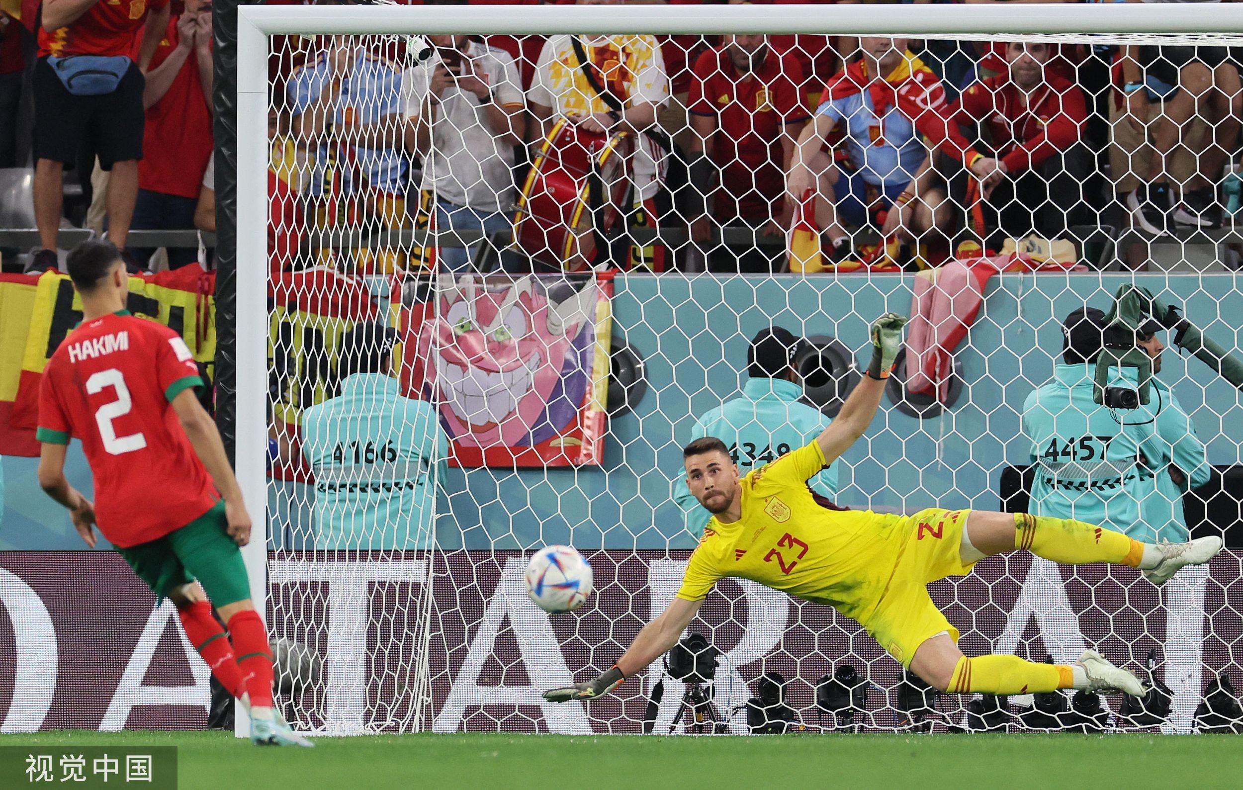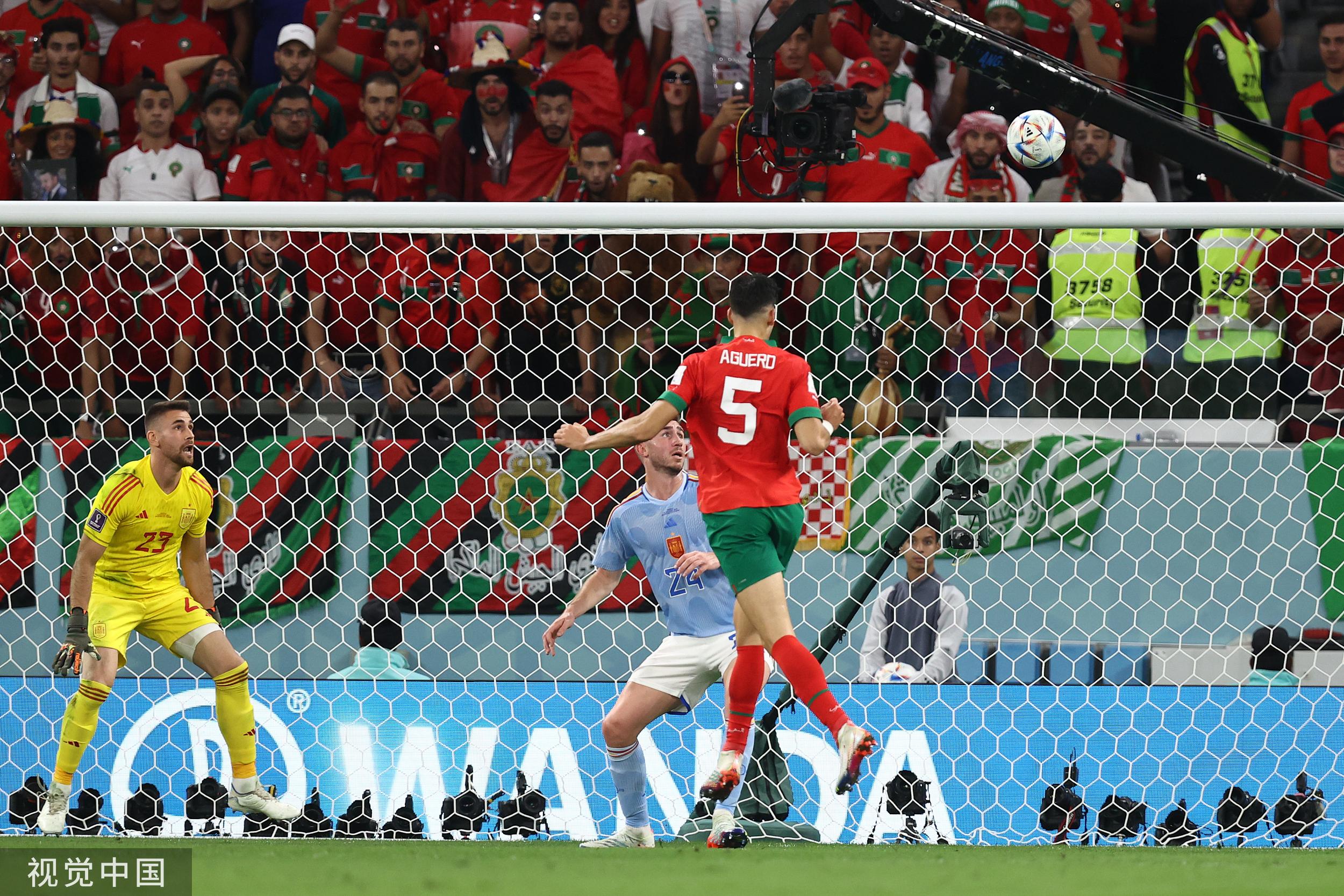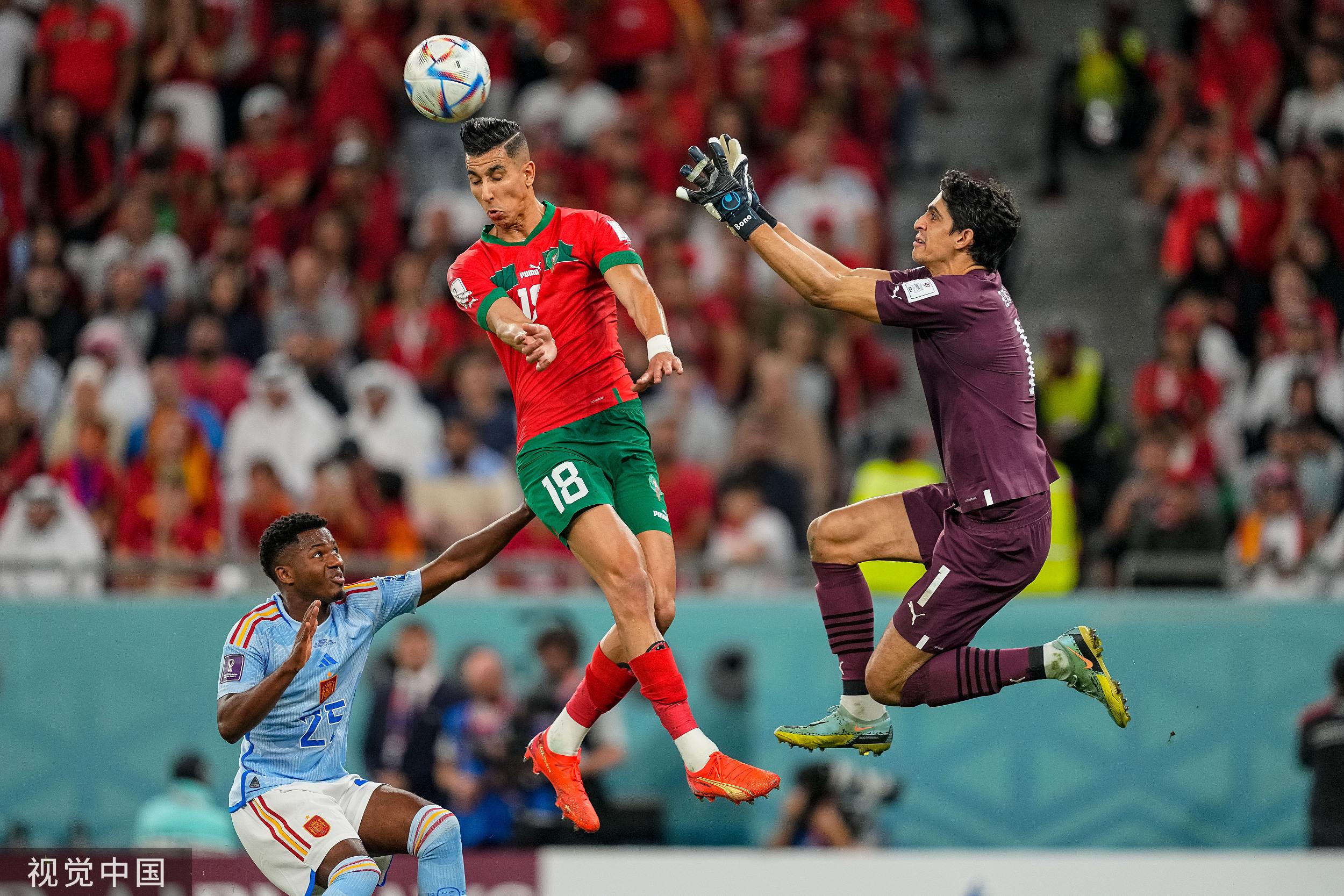 北京时间12月7日凌晨,在多哈的教育城体育场,世界排名第22位的摩洛哥和世界排名第七位的西班牙在120分钟里互交白卷,随后在点球大战中,摩洛哥以3比0战胜了西班牙。这是摩洛哥足球历史上第一次进入世界杯八强。