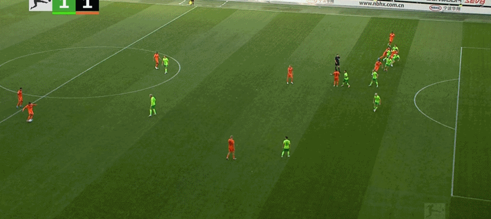 第76分钟,巴库禁区外远射破门!沃尔夫斯堡1-1