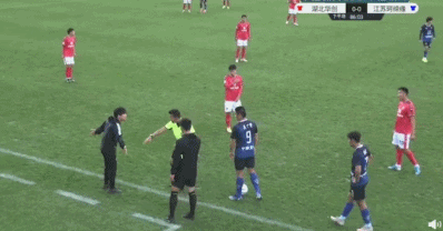 其一,湖北队主帅汪泉离开技术区域(The technical area),也就是板凳席和虚线的方框,几乎踩着球场的边线,这就是违规行为。