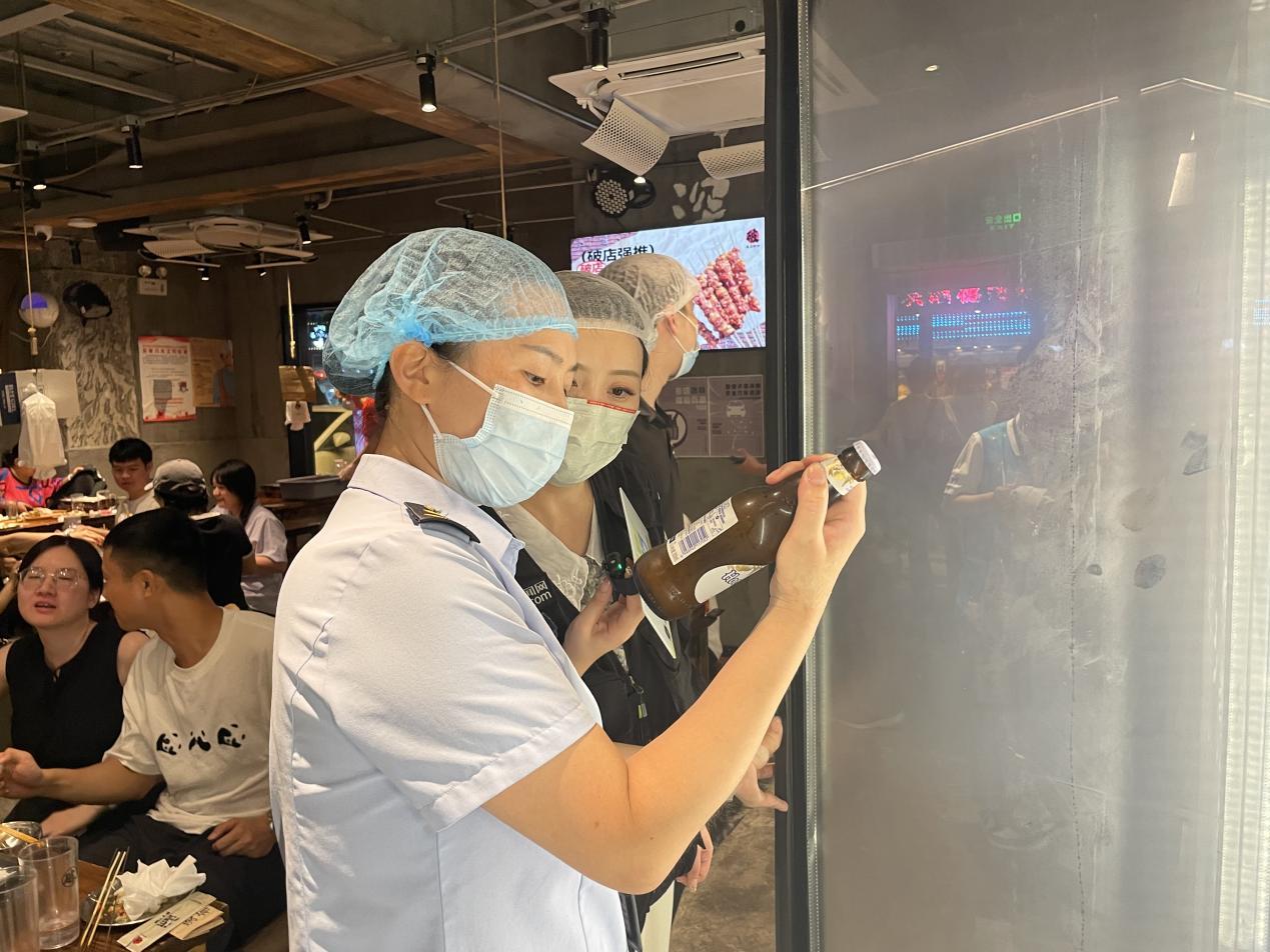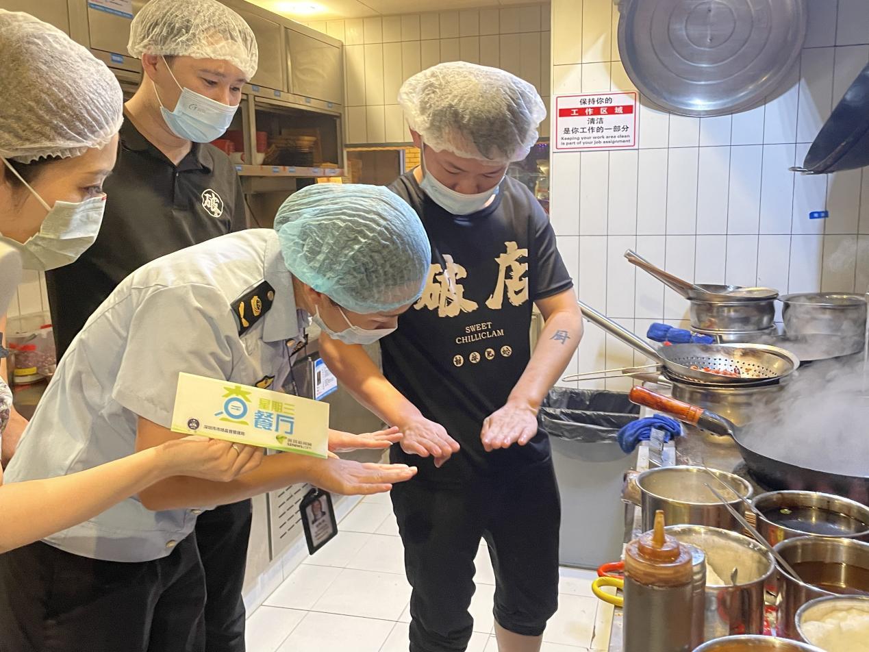 深圳新闻网2024年7月4日讯(记者 刘惠敏 翁瑞峰 牛耘 胡津玮)“星期三查餐厅,让深圳人吃得更放心。”6月中旬以来,欧洲杯、美洲杯等多项赛事联袂引爆球迷热情,同时也在助“燃”烧烤夜市、大排档、酒吧等“舌尖消费”。为保障人民群众的食品安全,7月3日晚,本期“星期三查餐厅”行动来到南山区,对1956数字文化创意园附近的LANDX精酿啤酒餐吧、破店肥哈·东北烧烤(南头店)两家餐饮门店后厨进行突击检查。经查,两家餐饮门店后厨和就餐区域卫生情况良好,但食材储存和员工管理方面都需要进一步整改。
