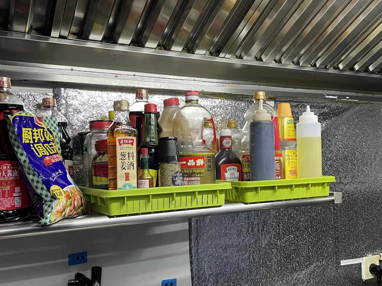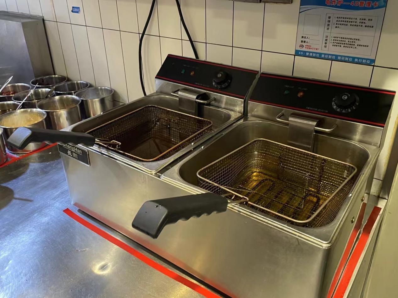 在烹饪区域,执法人员发现两瓶调味料分装瓶标签缺失,提示门店负责人及时张贴原产品信息。由于制售薯条和炸鸡等食品,后厨会使用食用油来进行烹炸作业。但由于炸制食品出餐量不高,门店会根据实际出品情况,每两到三天更换一次炸制用油。执法人员表示仅凭肉眼无法分辨炸油是否变质,要求门店采用试纸或检测仪器,及时监控油品质量。