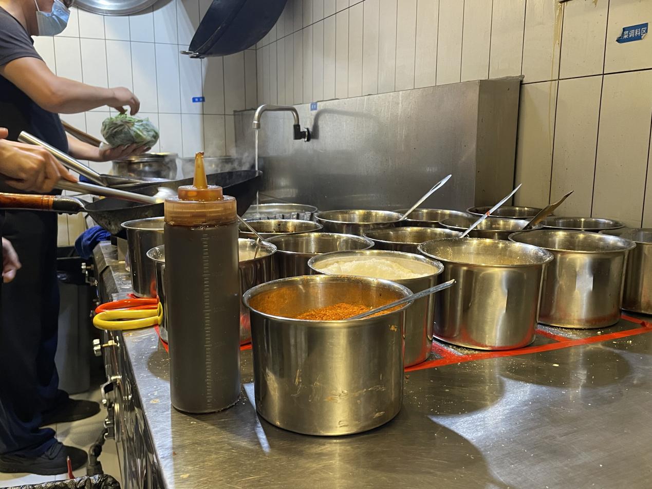 执法人员发现烹饪区所使用的调味料缺少相应标签标识,且炸制用油颜色稍暗。门店负责人表示,食用油每日进行更换,但未使用试纸或仪器进行检测。以上两项情况,执法人员均要求门店进行整改。