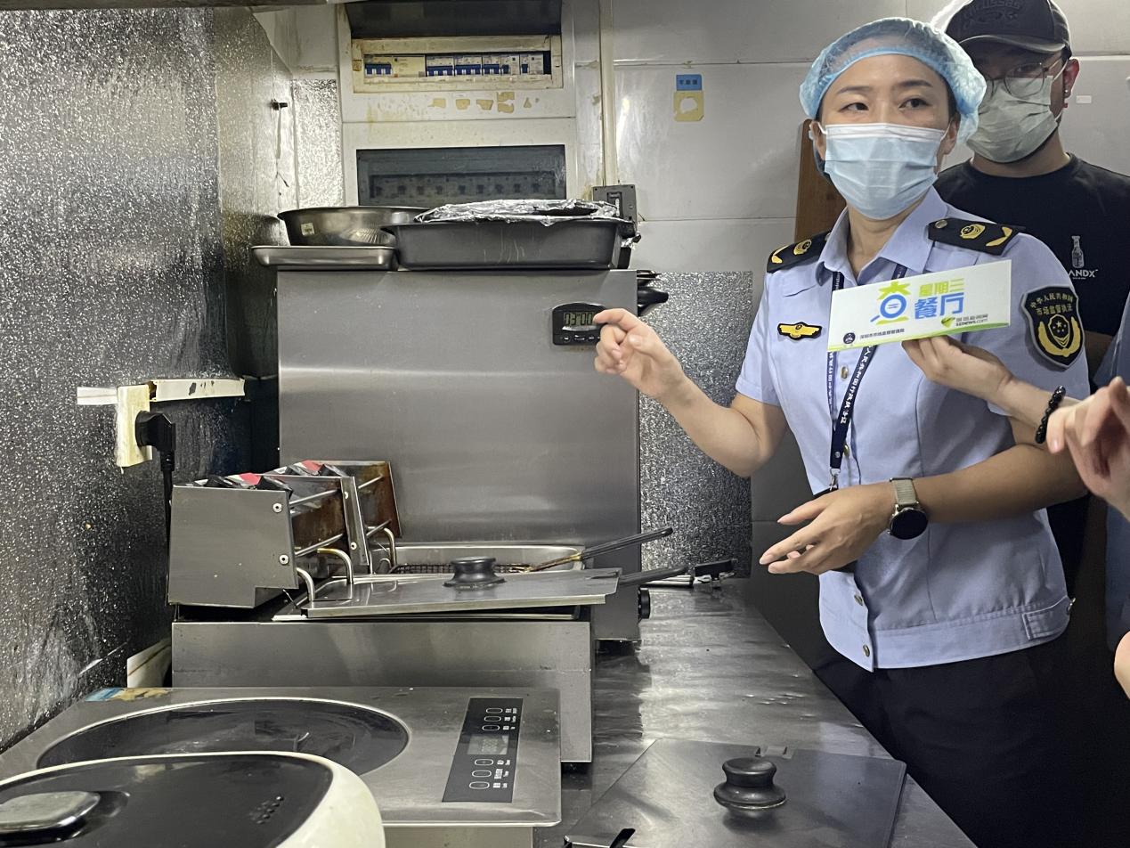 深圳市市场监督管理局南山监管局执法人员张纯总结今日检查行动表示,此次检查两家餐饮单位的后厨环境和就餐场所发现了几处问题。一是两家店食品标签标识均存在缺失的情况,二是未能严格进行食用油的质量监控,三是后厨员工在操作过程中,手套、帽子及口罩等个人卫生防护不规范、不到位。但同时,执法人员也指出,两家店在食品安全信息公示,包括营业执照、食品经营许可证、健康证公示,以及食品安全管理员配备方面,都做得很到位,而且就餐环境和后厨环境卫生情况都较好,接下来市市场监管局会针对今天的检查情况要求两家门店尽快进行整改。