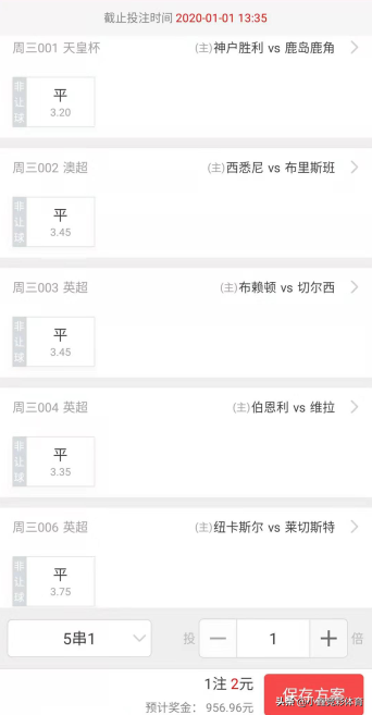 上下盘 :让球方是上盘,被让球方是下盘。让球 :就是主队加减让球数后的比赛结果,上一期已经说过了,就不多说了。单式、复式 :前者是你在一场比赛中选择一个结果,就是单式票;选了俩个以上结果就是复式票,竞彩是算你投了多少注,一注2块钱,可以选择投多少倍,这也是竞彩主要的投注方法,关于投注技巧,以后会专门说到。做串子 :也就是常说的2串1,3串1等等,竞彩最少2串,赔率是相乘的,像下面这张图,5串之后赔率高达478倍,100块可以中4万8000元。做串
