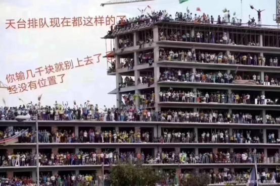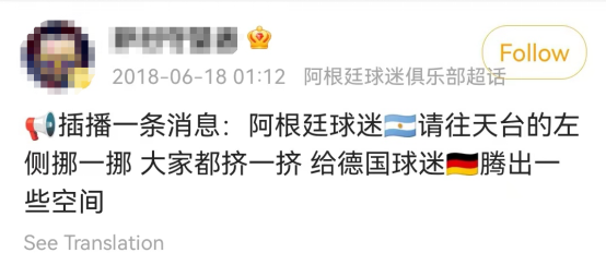 阿根廷球迷请往天台的左侧挪一挪,给德国球迷腾出一些空间。