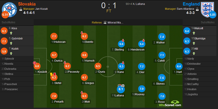 并且随着斯洛伐克人一再收缩防守队形,英格兰的射门位置也变得越来越近。进球或许来的有点晚,但英格兰人配得上这场比赛的胜利。