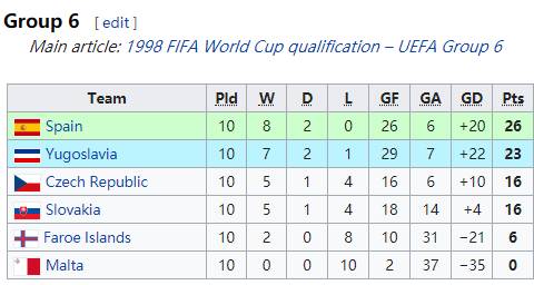 捷克与斯洛伐克的第一次厮杀,是在1998年法国世界杯欧洲区预选赛。 捷克和斯洛伐克与斗牛士西班牙、刚刚解禁复出的南斯拉夫、法罗群岛和马耳他同组,每组的第一名和成绩最好的小组第二直接晋级世界杯。剩下的八个小组第二则通过附加赛决出剩余的四个名额。那时候的捷克队,是带着欧洲杯亚军的光环。而斯洛伐克队,则是无名小辈。他们在世界杯欧洲区预选赛的首次交手是1997年8月24日(当地时间),斯洛伐克主场2-1战胜了捷克。双方的次回合交手出现在1997年10月,捷克主场3-0战胜了斯洛伐克。但是,无论是捷克还是斯洛伐克,都未能取得附加赛资格,提前告别了法国世界杯。