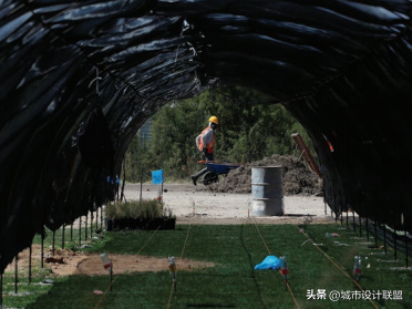 公园内正在搭建的绿色植物种植棚(来源:MIT Technology Review. The return of Lake Texcoco)