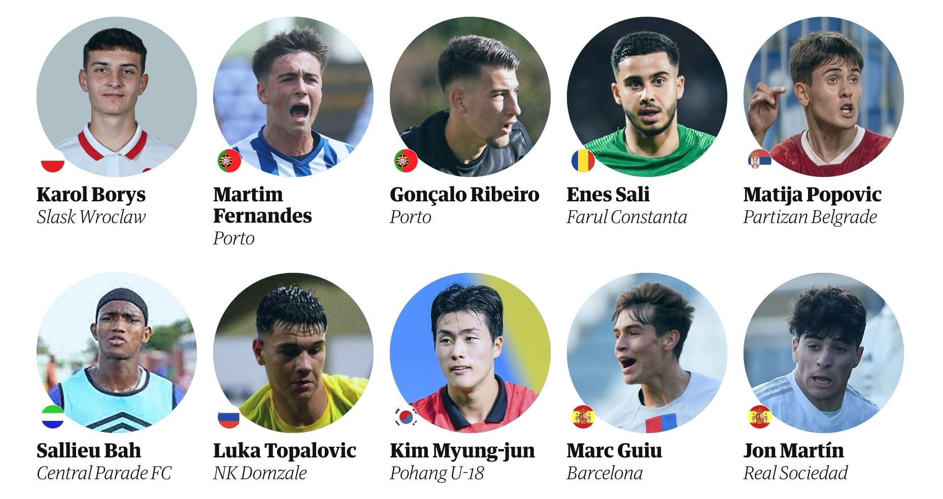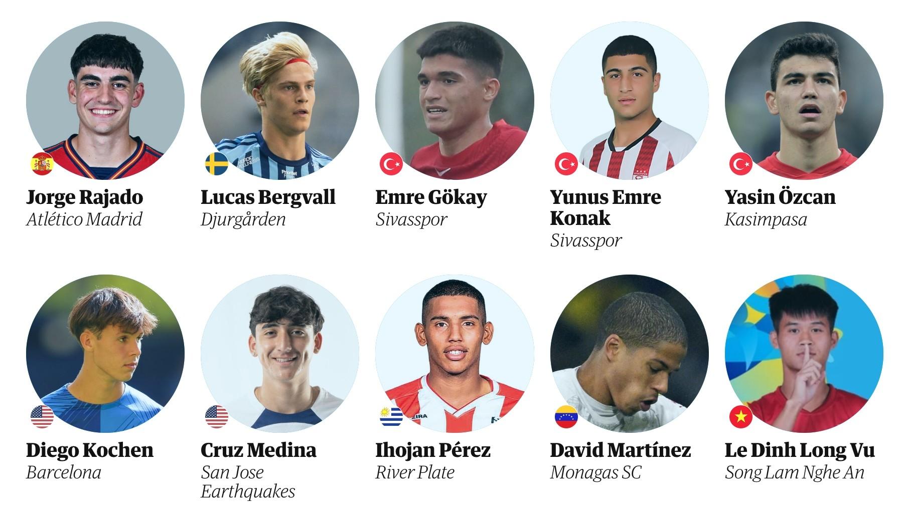 名单:马克·吉尤 - 西班牙乔恩·马丁 - 西班牙 豪尔赫·拉哈多 - 西班牙穆斯林阿纳图夫 - 阿尔及利亚克劳迪奥·埃切韦里 - 阿根廷詹卢卡·普雷斯蒂安尼 - 阿根廷内斯托里伊兰昆达 - 澳大利亚奥利弗·卢基奇 - 奥地利朱利安·杜兰维尔 - 比利时考阿伊莱亚斯 - 巴西恩德里克 - 巴西路易斯·吉列尔梅 - 巴西维托雷斯 - 巴西瓦伦丁·约托夫 - 保加利亚奥斯曼卡马拉 - 布基纳法索布拉扬·马特奥·凯塞多·拉莫斯-哥伦比亚诺亚斯科科 - 克罗地亚托比亚斯·斯洛萨格 - 丹麦艾伦·奥万多 - 厄瓜多尔乔治·伊莱尼赫纳 - 法国小克鲁皮 - 法国沃伦·扎伊尔-埃默里 - 法国亚历山大·佩克里希维利 - 格鲁吉亚巴黎布鲁纳 - 德国诺亚·达尔维奇 - 德国阿尔穆盖拉卡巴尔 - 德国斯特凡诺斯·齐马斯 - 希腊阿龙·雅各比什维利 - 匈牙利丹尼尔·古德约翰森 - 冰岛马蒂亚·曼尼尼 - 意大利托马索·马蒂内利 - 意大利西蒙娜·帕芬迪 - 意大利名和田我空 - 日本神圣茶 - 利比里亚盖尔·阿尔瓦雷斯 - 墨西哥菲德尔·巴拉哈斯 - 墨西哥瓦西里耶·阿季奇 - 黑山阿卜杜勒哈米德·艾特·布德拉尔 - 摩洛哥约雷尔·哈托 - 荷兰泰戈乐园 - 荷兰伊曼纽尔 迈克尔 - 尼日利亚斯韋雷尼潘 - 挪威瓦伦蒂诺·德尔加多 - 秘鲁卡罗尔·鲍里斯 - 波兰马蒂姆·费尔南德斯 - 葡萄牙贡萨洛·里贝罗 - 葡萄牙埃内斯萨利 - 罗马尼亚马蒂亚·波波维奇 - 塞尔维亚萨利厄巴 - 塞拉利昂卢卡 托帕洛维奇 - 索尔菲尼亚金明俊 - 韩国卢卡斯·贝格瓦尔 - 瑞典埃姆雷·格凯 - 土耳其尤努斯·埃姆雷·科纳克 - 土耳其亚辛·厄兹詹- 土耳其迭戈·科亨 - 美国克鲁兹- 美国伊霍扬- 乌拉圭大卫·马丁内斯 - 委内瑞拉黎庭龙武 - 越南