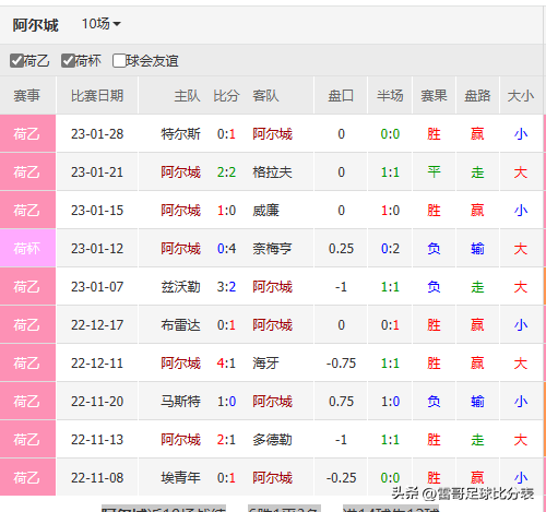 阿尔城 近10场战绩6胜1平3负进14球失12球