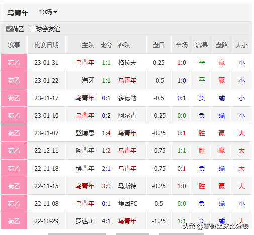 乌青年 近10场战绩3胜2平5负进13球失14球