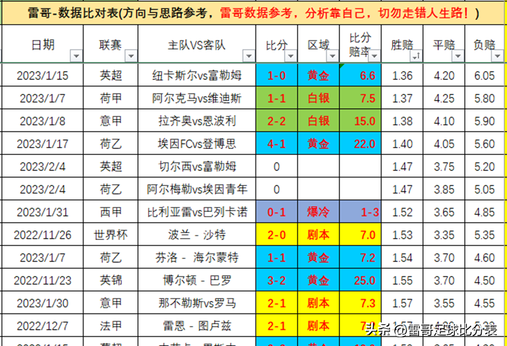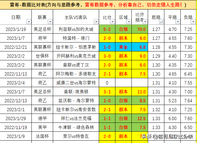 由于时间精力所限,文中结论仅为雷哥依据数据粗略判断,具体仍需结合球队状态做深入分析。