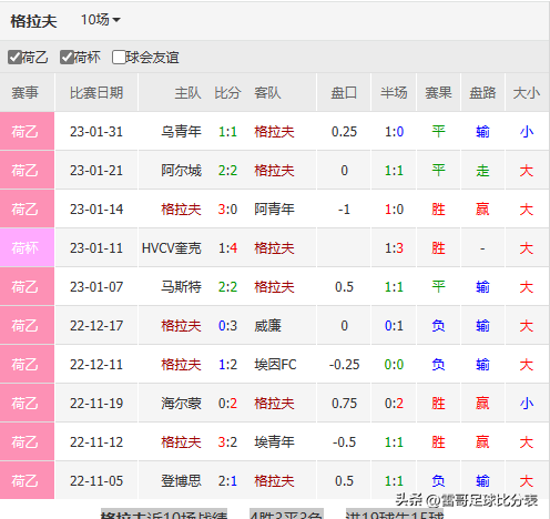 格拉夫 近10场战绩4胜3平3负进19球失15球