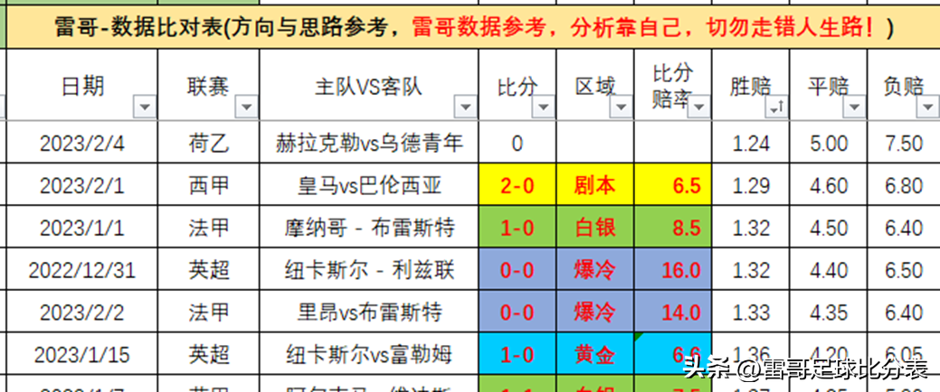 2、雷哥比分表
