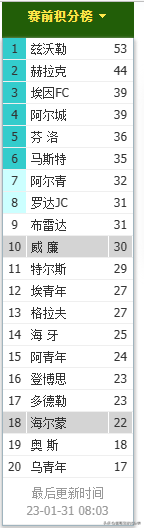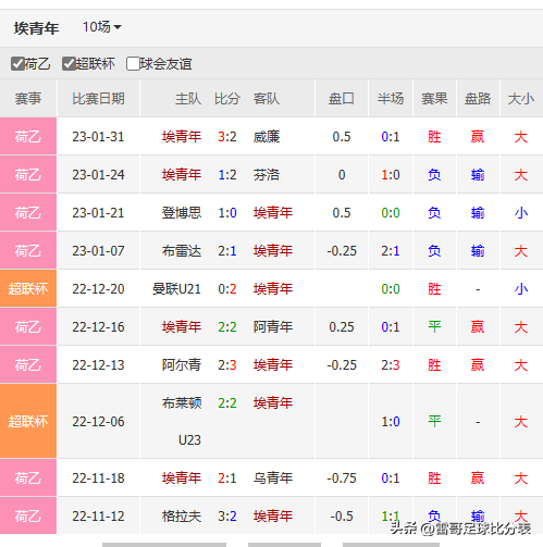 埃青年 近10场战绩4胜2平4负进18球失17球