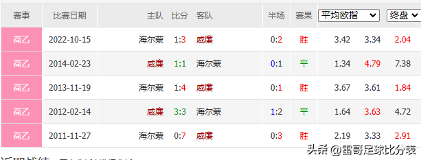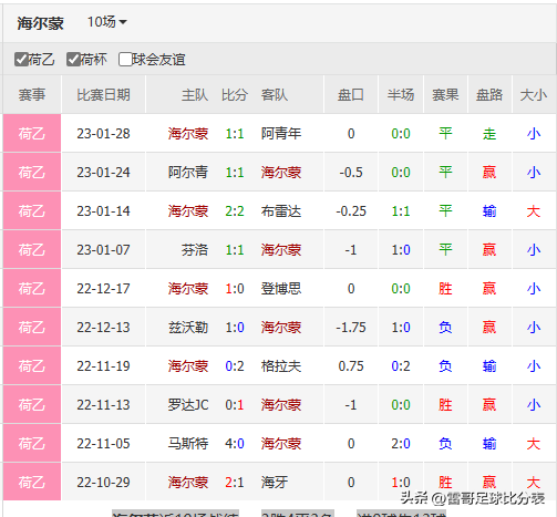 海尔蒙 近10场战绩3胜4平3负进9球失13球