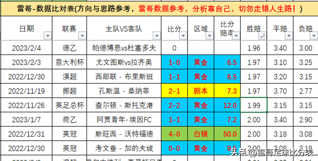 3、雷哥数据比对表