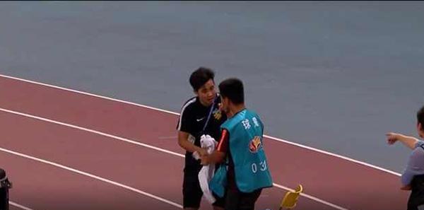 随后在第23分钟,围绕着毛巾的“战斗”波澜又起。权健队工作人员去场边拿毛巾,但球童不给,双方起了争执。最终权健3名工作人员被主裁罚上了看台。