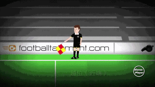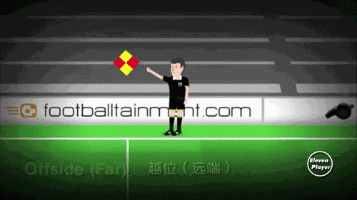 近端越位:将旗子举在低于肩膀的位置(下图右上);